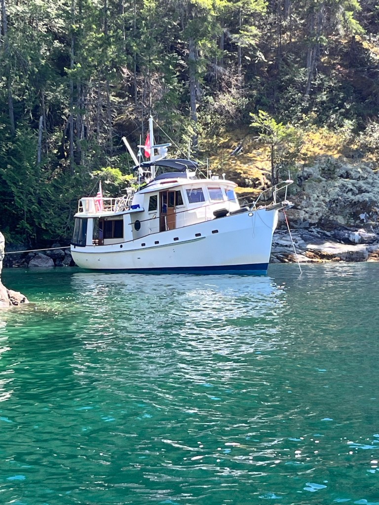 Allow me to introduce Wester Lee. She is a fine old gal, a sibling to Voyager. No, we didn’t buy another boat, but we have had the privilege of cruising her for three weeks throughout Desolation Sound, B.C. Let me also introduce her owners: Dean and Cindy. They are great friends who listened as we shared our difficult decision to sell Voyager in order to spend more time in the summers with our grandkids. They understood since they too have a passel of kids. Hence their problem… As they cruise during the summer, life goes on. They called and asked us to ‘babysit’ Wester Lee so they could see kids. What a gift to us! To return to the lifestyle, beauty and adventure of cruising is an unexpected reprise of overwhelming proportions.